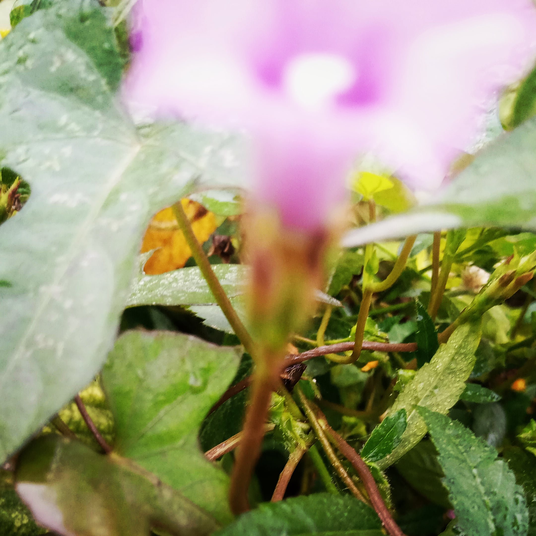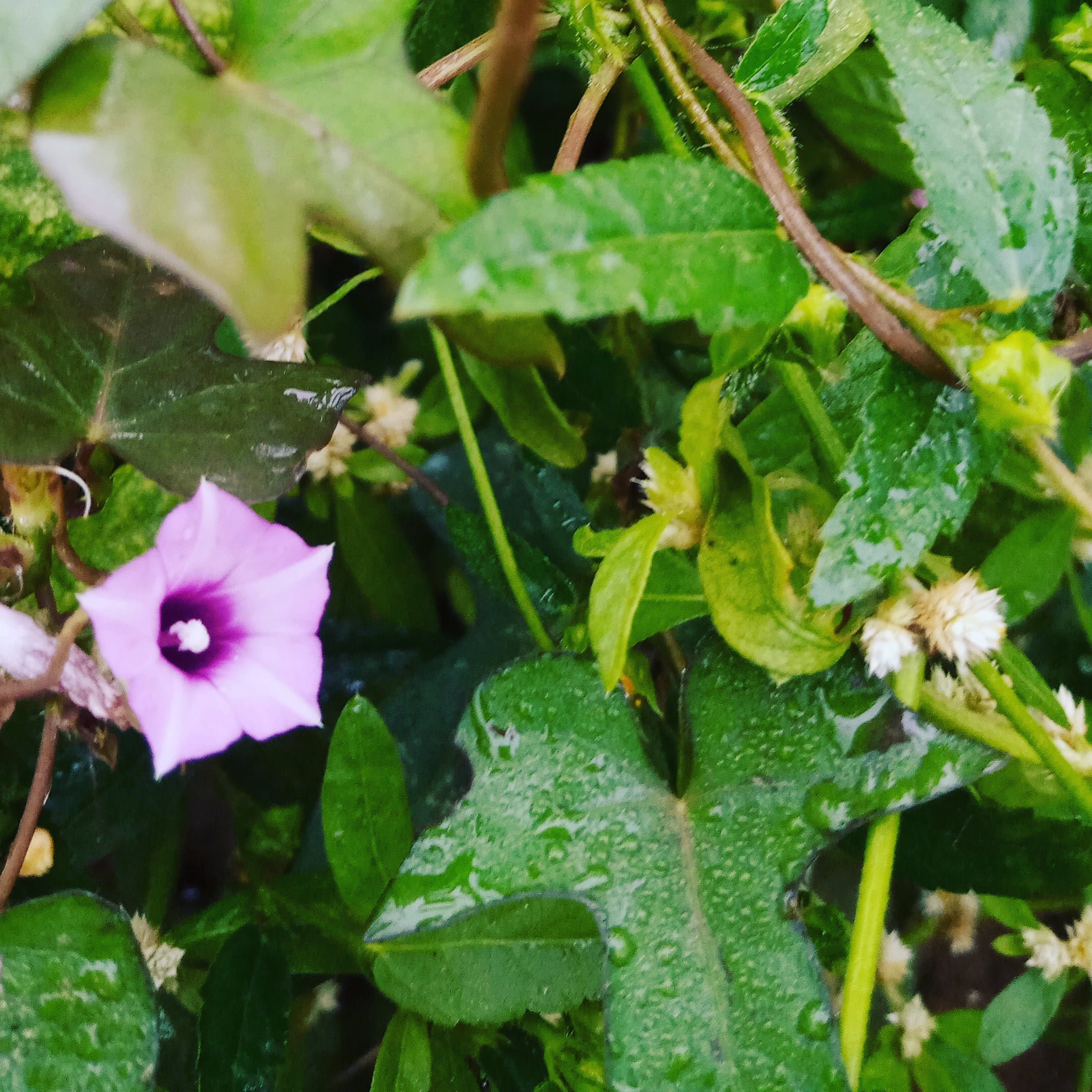 I was walking around very early today. Then I walked past this weed called “flower of flies” or “Ipomoea triloba”.